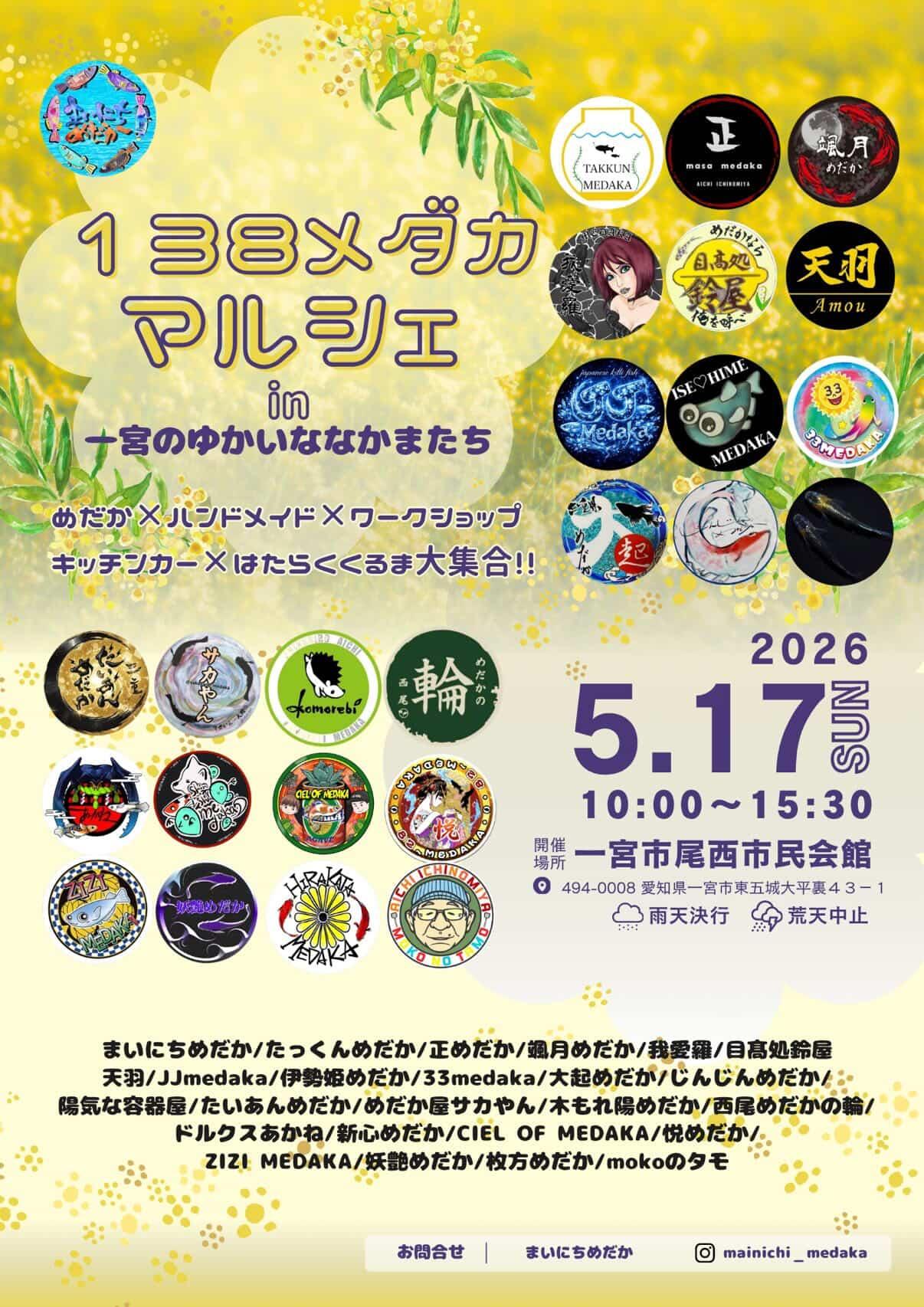 今回もめだか、ハンドメイド ワークショップ、キッチンカーなど 約100店舗が大集合